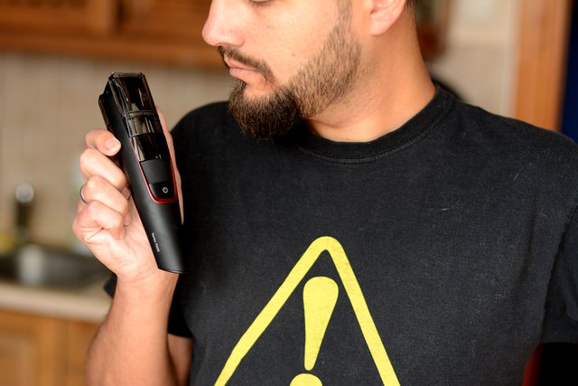 Тример для бороди від Philips нагадує моделі попереднього покоління. Втім, його основна відмінність – вакуумна система всмоктування збритих волосин.