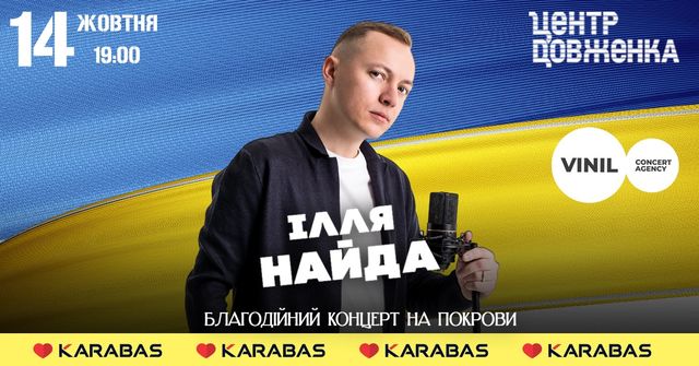 Львів'ян запрошують на благодійний концерт Іллі Найди. 14 жовтня у Lviv Dovzhenko Centre відбудеться благодійний концерт на Покрови Іллі Найди.
