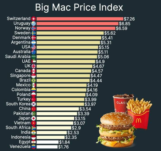 У дослідженні, яке проводиться з 1986 року, оцінюється вартість бургера "Біг-Мак", який продається в популярній мережі фаст-фудів "МакДоналдс". The Economist порівнює вартість бургерів у всіх країнах світу з його вартістю в США.