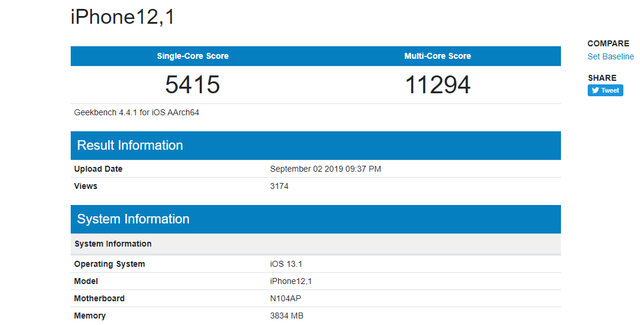 На сайті Geekbench 4 засвітився якийсь пристрій під кодовою назвою iPhone 12,1, що працює на iOS 13.1 з ідентифікатором материнської плати N104AP. Остання назва вказує на те, що плата наступника iPhone XR мала внутрішнє кодову назву N104, а це означає, що таємнича новинка цілком може бути поліпшеним iPhone 11 XR і найдоступнішим смартфоном нової лінійки Apple.