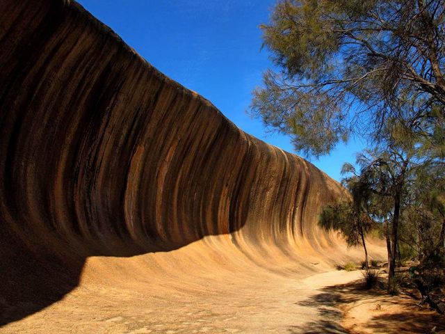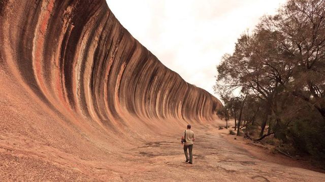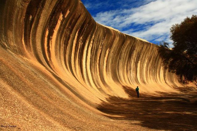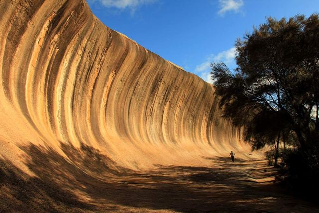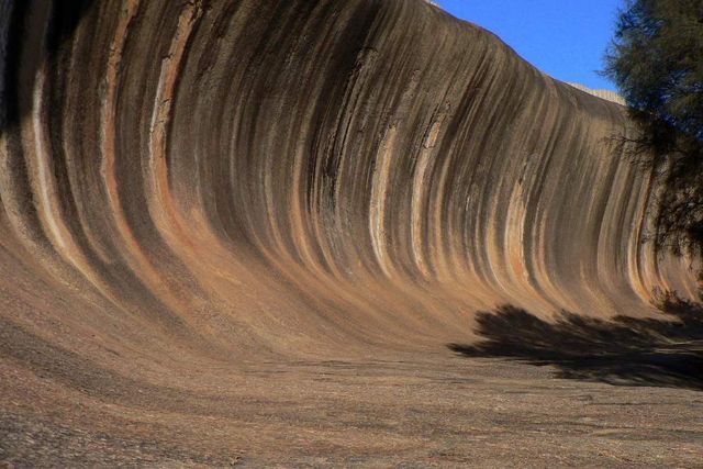 Насправді, це просто 15-метрова скеля химерної форми, яка так і називається Wave Rock (Кам'яна хвиля). Довжина цього масиву 110 метрів, і вона займає площу в кілька гектарів! За даними вчених, хвиля з каменю утворилася ще 2700 мільйонів років тому, правда, тоді вона мала зовсім іншу форму. На те, чим зараз милуються тисячі туристів, вплинула вода.