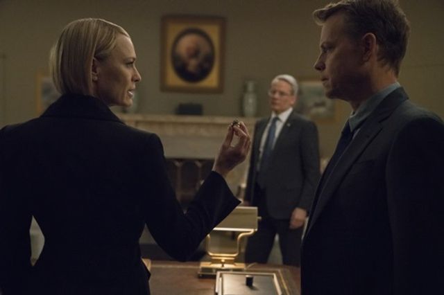 Головну героїню в ньому грає актриса Робін Райт. Вона виконує роль Клер Андервуд, яка зайняла посаду президента США і змінила звичайні костюми на суворі, майже військові.