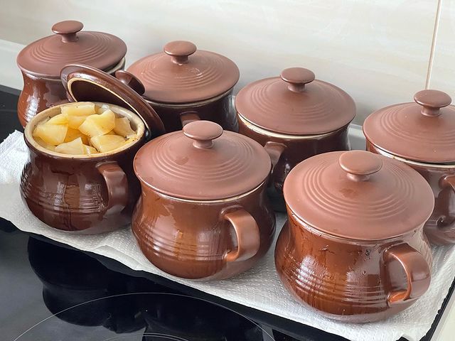 - Усі інгредієнти розкладіть порційно по горщиках та додайте улюблені спеції.
