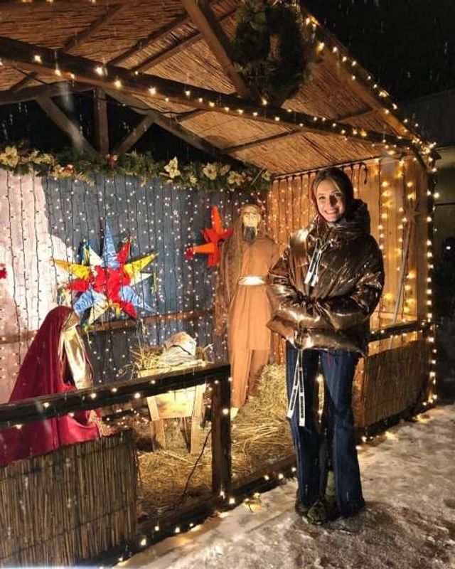 На знімку популярна телеведуча стоїть на тлі різдвяного вертепу з народженим немовлям Ісусом, зірка в теплому блискучому пуховику бронзового кольору. Під нього Катя підібрала уггі забарвлення камуфляжу і темно-сині штани. "Нехай мир і злагода будуть у кожному домі", – підписала знімок Осадча.