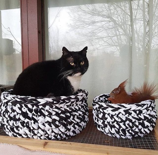 Якось мешканець Данії Декан Андерсен (Decan Andersen) знайшов у своєму дворі малесенького гризуна, який впав з великої висоти. Тваринка мала травму грудної клітки, тож потребувала турботи та уваги. Тоді Декан вирішив залишити у себе білку, хоча вже мав котів. Саме так почалась історія цієї кумедної дружби між чорним Тигром (кіт) та рудою Тін-Тін (гризун). Щоправда, спершу у домі відбувались ледь не війни, однак згодом тварини почали весь час проводити разом, лазити по деревах та "полювати" на птахів.