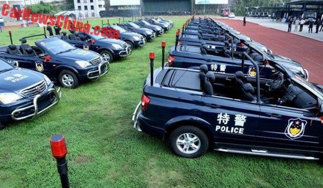 Службовий автопарк китайської поліції поповнили незвичними для правоохоронців автомобілями - позашляховиками-кабріолетами.