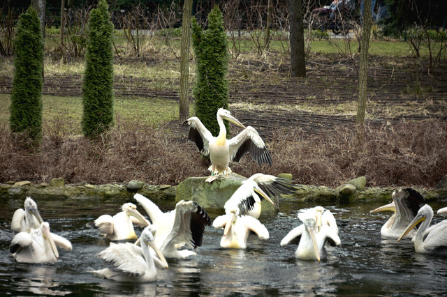 Київський зоопарк випустив на воду цілу родину пеліканів: 16 рожевих та 4 кучерявих. Цьогорічний теплий березень дозволяє зробити це трошки раніше, ніж зазвичай.