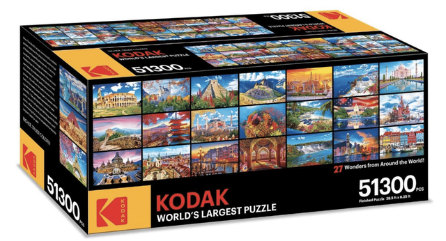 Компанія Kodak представила найбільший у світі комерційний пазл, що складається з 51 300 фрагментів. У зібраному вигляді висота пазла становить 1,9 метра, довжина – 8,6 метра, вся конструкція важить 18,5 кілограмів.