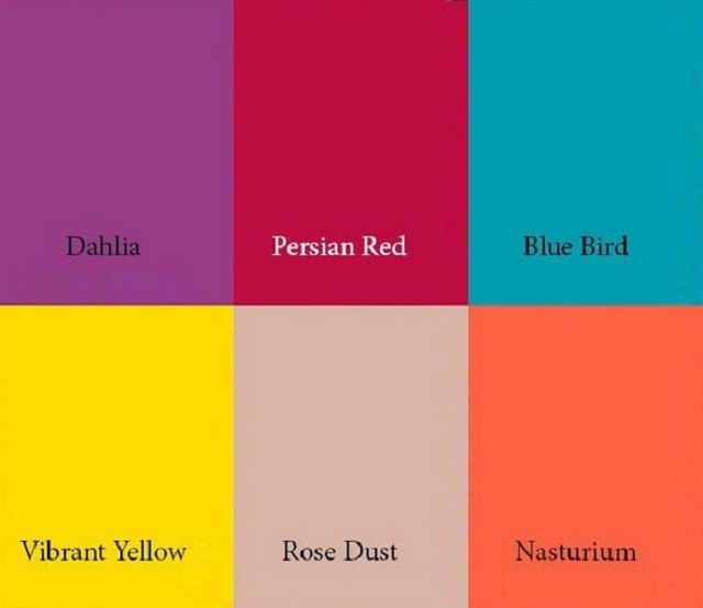Ця панель перегукується з попередніми. Тут і данина землі і природи, і знайомі вже квіткові відтінки (Dahlia іPersianRed). З цього набору варто почерпнути симпатичні поєднання, наприклад яскравість перського рожевого з пастельною туманною трояндою (RoseDust), або соковитий сплеск фіолетового (Dahlia) і небесно-блакитного (BlueBird).
