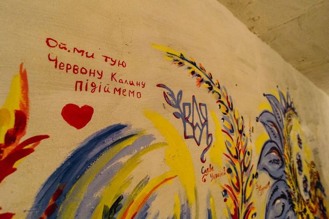 Українці у різних містах не лише облаштовують укриття ліжкомісцями та проводять туди інтернет, а й створюють там затишок. Одним з таких прикладів є бомбосховище на Рівненщині, де місцеві художники та активісти намалювали на стінах кольорові квіти та додали до них патріотичні написи.