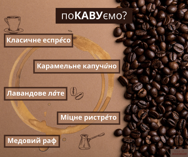 Правопис та вимова важливі, тож зверніть увагу на назви найпопулярніших кавових напоїв. Читайте далі та дізнайтеся, як правильно наголошувати ці напої українською.