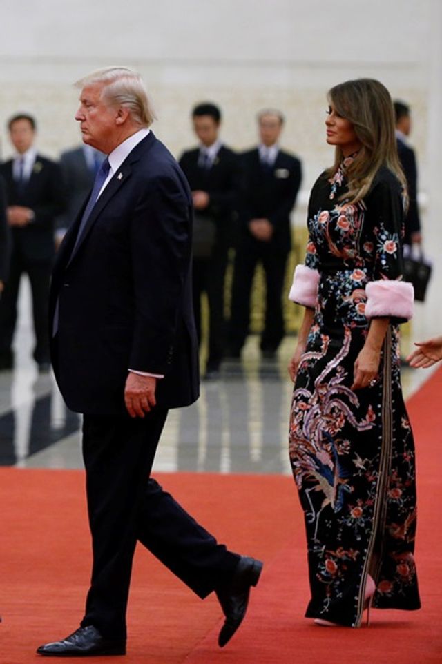 Дружина Дональда Трампа Меланія з'явилася на урочистій вечері в Пекіні у вишуканій сукні-кімоно. Вечеря була організована головою КНР Сі Цзіньпінем і його дружиною Пен Ліюань.