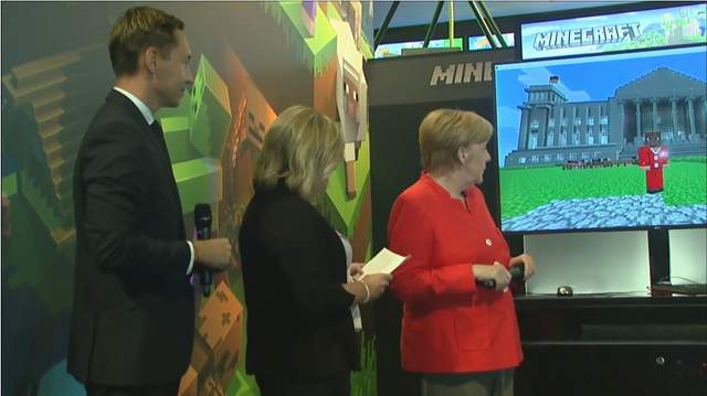 Фрау Меркель подивилася трейлер Assassin's Creed: Origins і пограла в Farming Simulator на PS4. Від компанії Sony Меркель дізналася про віртуальну реальність, а співробітники Microsoft продемонстрували їй освітню цінність ігор на прикладі популярного Minecraft.