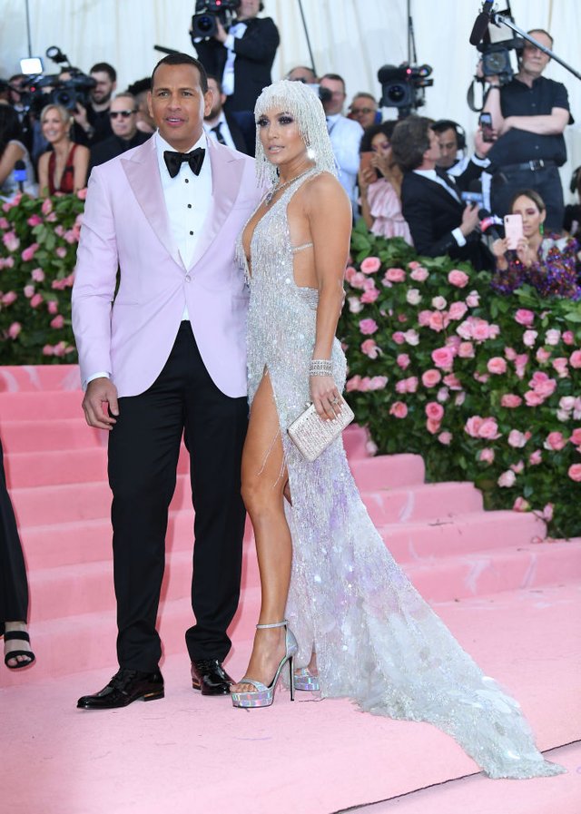 Співачка Дженніфер Лопес з'явилися на балу разом зі своєм коханим Алексом Родрігесом. Своїм нарядом зірка довела, що найкращі друзі жінок – це таки діаманти та сапфіри.