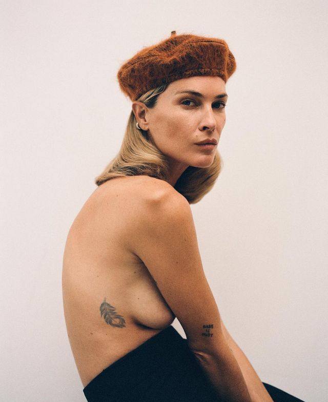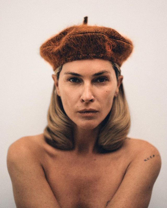 Стильні фотографії виклали на інстаграм-сторінці бренду Ruslan Baginskiy. На кадрах модель позує без одягу в береті. Усе для того, щоб привернути до нього максимум уваги. Також Воссон приміряла фірмові кашкети й інші головні убори від Руслана Багінського.