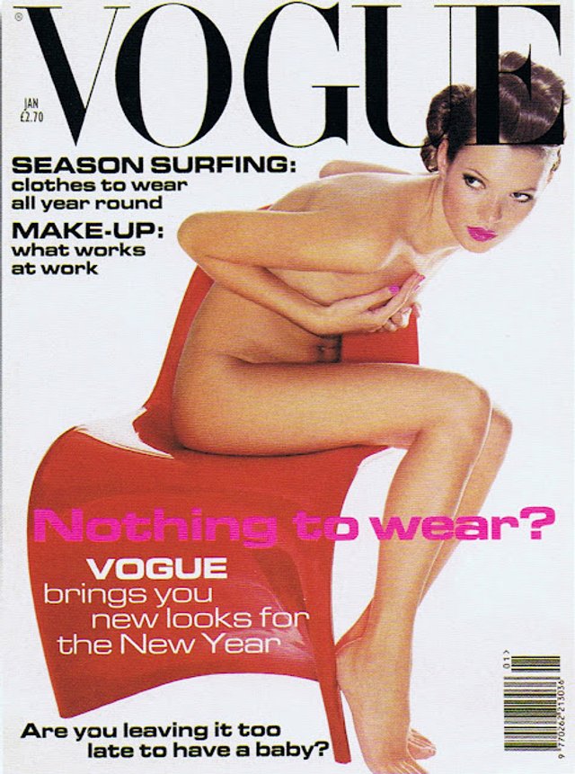 У 21 Кейт Мосс вперше знялася оголеною для січневої обкладинки британського журналу Vogue. Вона зруйнувала ідеали краси того часу: в світі моди настала епоха дуже худих моделей-підлітків.