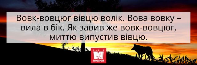 - Вовк-вовцюг вівцю волік. Вова вовку – вила в бік. Як завив же вовк-вовцюг, миттю випустив вівцю.