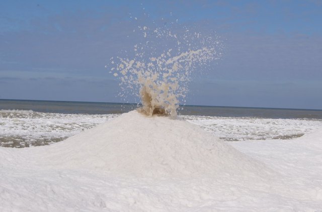 Експерти прийшли до висновку, що крижані вулкани утворюються внаслідок коливання води: верхній шар замерзає, а нижній постійно рухається, в результаті і виходять такі крижані конічні виступи, з яких вивергаються фонтани води.