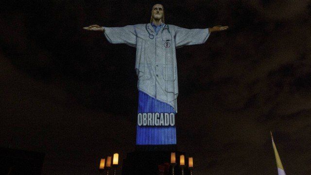Завдяки зображенню, спроєктованому на знамениту статую, Спаситель "убрався" в білий халат, який носять лікарі.