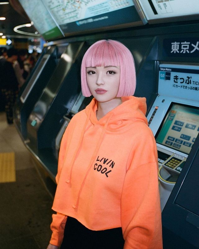 Віртуальна модель Імма, створена японською компанією ModelingCafe, з'явилася у рекламі косметики Kate разом зі справжніми дівчатами.