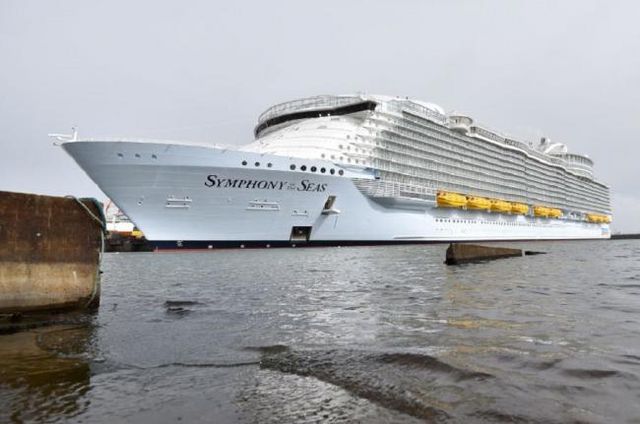 Сотні людей зібралися на березі, щоб подивитися, як гігант під назвою Symphony of the Seas підняв якоря і відправився в свій перший рейс.