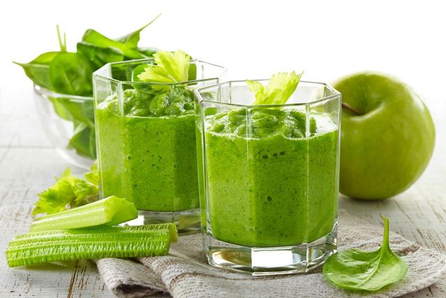 Смузі із зелених овочів. Смузі із зелених овочів (салат, огірок, селера, шпинат, кріп, петрушка) виводять з організму токсини і зайву рідину, захищають печінку від пестицидів і важких металів. У зеленому смузі не повинно плавати шматочків зелені. Для його приготування скористайся потужним блендером.