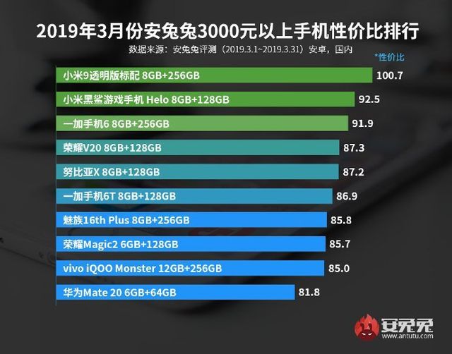 Нарешті, серед найдорожчих смартфонів вартістю понад 3000 юанів найкращим за співвідношенням ціни та пропонованих характеристик назвали Xiaomi Mi9 Transparent Edition 8/256 ГБ. Друге місце віддали Black Shark Helo 8/128 ГБ. Третє ж місце дісталося OnePlus 6 8/256 ГБ.