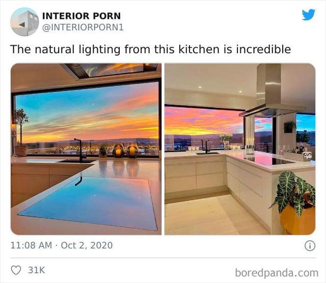 Twitter-акаунт під назвою Interior Porn показує дизайни будинків та квартир, від яких реально перехоплює подих. Тут зібрано найбільш вражаючі інтер'єри, де дизайнери справді постарались. Кожна деталь милує око, а самі кадри захоплюють естетикою.