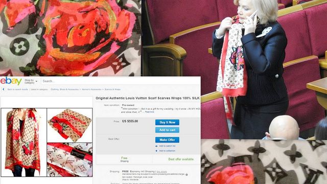 Нардеп "вигуляла" в парламенті розкішний шарфик з 100-процентного шовку Louis Vuitton, вартість якого 555 доларів, або близько 14,4 тисяч гривень, пише "Апостроф".
