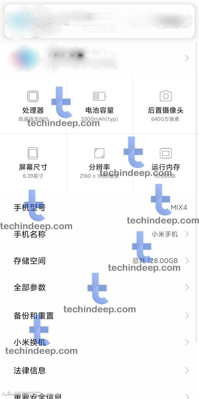 Якщо вірити зазначеним на скріншоті характеристикам, то Mi Mix 4 отримає флагманський процесор Snapdragon 855, дисплей діагоналлю 6,39 дюйма з роздільною здатністю 2160х1080 пікселів, 10 ГБ оперативної пам'яті та 128 ГБ вбудованого сховища.