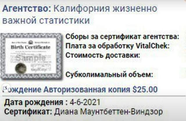 Про це говорить і офіційний реєстр США. Однак там є Діана Маутбеттен-Віндзор без жодних "Лілібет" і навіть "Лілі". Згідно із законодавством США всі свідоцтва про народження і дані про ім'я людини зберігаються у відкритому доступі.