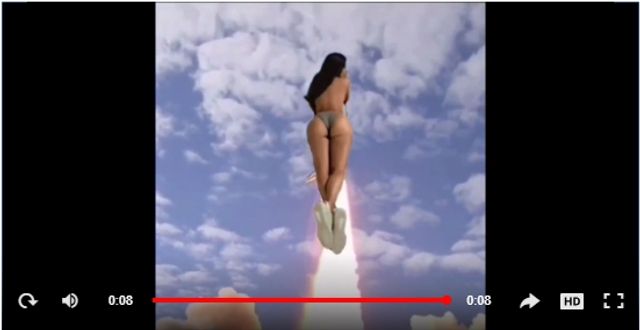 На ньому модель лежить на ліжку топлес і в бікіні. Фото Кардашьян опублікувала на своїй сторінці в Twitter. Але знімок викликав непередбачену реакцію. Модель зробили об'єктом насмішок і приколів. Кардашьян навіть запустили в космос, як ракету.