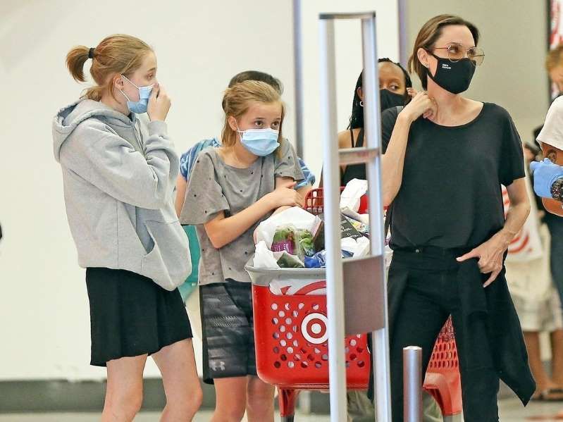 Однак цього разу наряд Анджеліни привернув куди менше уваги, ніж її дочка Шайло. Вона одягла сірий світшот з чорними шортами, які підкреслили довгі і стрункі ноги дочки Джолі і Пітта. Волосся 14-річна дівчина зібрала в пучок і не забула про одноразову маску.