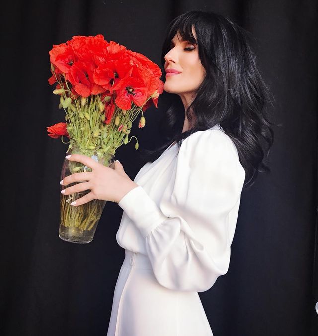 На своєму акаунті Instagram дівчина показала фоловерам несподівану зміну в зовнішності. Знаменитість виставила фото у розкішному білому платті з букетиком червоних маків у руці.