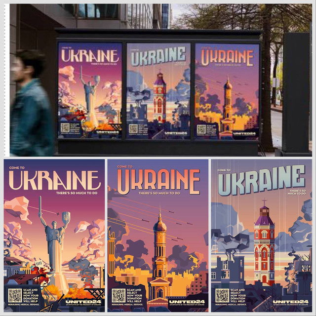 Креативники з Pablo розробила рекламну кампанію для UNITED24. Вони створили туристичні постери у ретро-стилі, які запрошують до України та показують історичні будівлі та туристичні місця, зруйновані російськими ракетами.