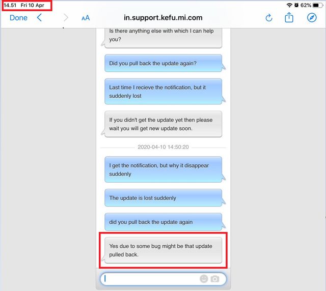 Xiaomi намагалася випустити оновлення до Android 10 з вересня 2019 року. 8 квітня 2020 року компанія випустила оновлення втретє, але, на жаль, його теж довелося відкликати.