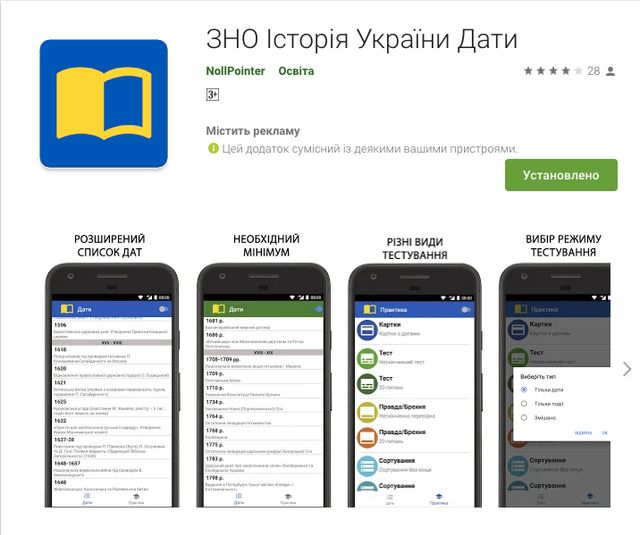 Це ще один додаток цього ж розробника, який дозволяє абітурієнтам вивчити історію України. Усі теми поділені на блоки для легшого вивчення та систематизації знань. Тут також необхідно буде заплатити за продовження навчання. Тішить той факт, що перші кілька занять безкоштовні, і саме завдяки ним ви можете зрозуміти для себе, чи варто продовжувати користуватися цим додатком. Те ж стосується і додатка з українською мовою.