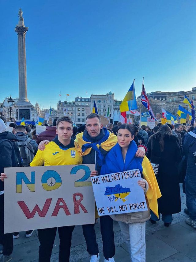 Колишній головний тренер збірної України Андрій Шевченко вийшов на мітинг на Трафальгарській площі у Лондоні, присвячений подіям в Україні.