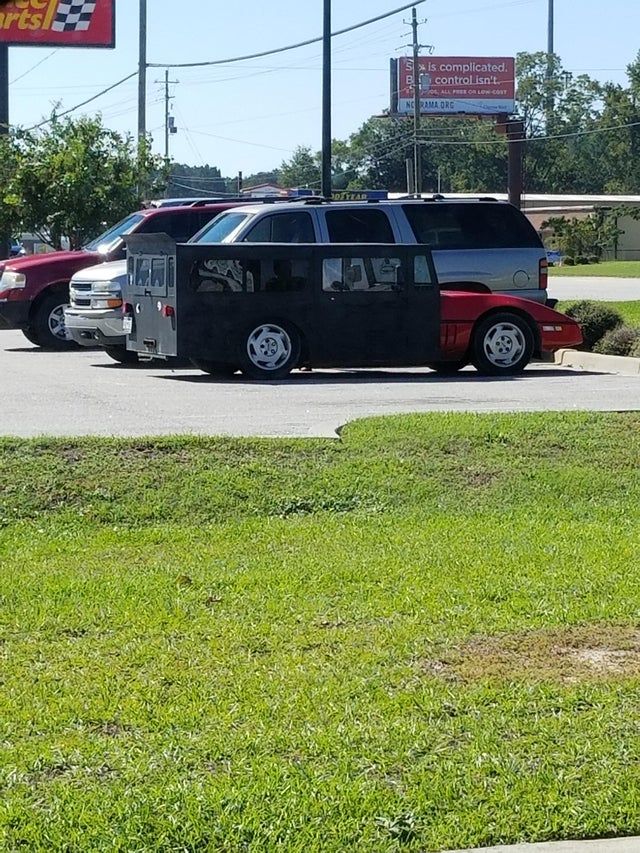На американських дорогах нещодавно сфотографували шалено дивний автомобіль – гібрид Chevrolet Corvette з чимось, що нагадує армійський Hummer. Про нього нічого не відомо, крім того, що він явно саморобний. Але виглядає машина настільки незвичайно, що подивитися на неї точно варто.