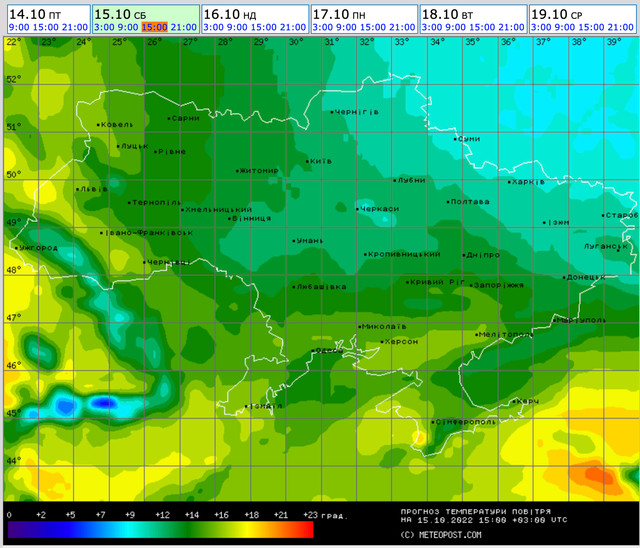 Найтеплішою буде погода на півдні України та в західних областях, максимально +14+19 градусів. На решті території очікується +10+15 градусів. Не забувайте, що ночі вже осінньо-холодні, передбачається 0+6 градусів, – додала вона.
