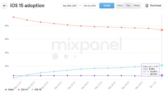 Статистика установок iOS 15 з 20 вересня по 1 жовтня 2021 року