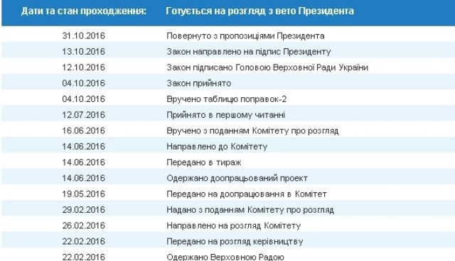 Про це йдеться в картці проходження проекту на сайті Верховної Ради, повідомляє "Ліга.нет".