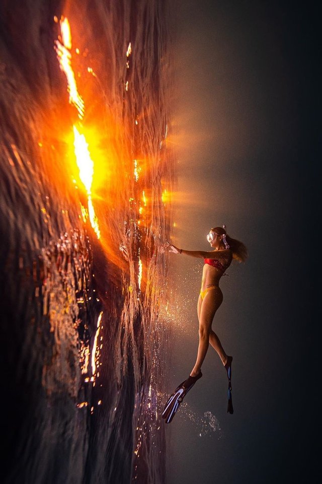 Ефектний знімок дівчини, яка пливе під водою на заході сонця, здивував користувачів мережі.