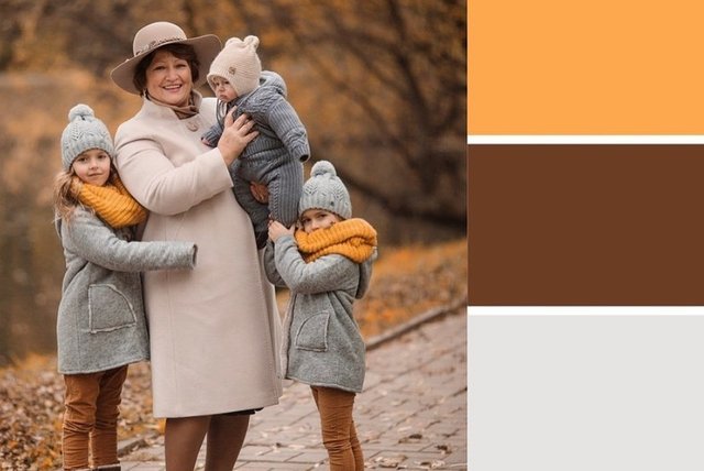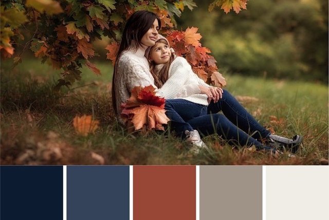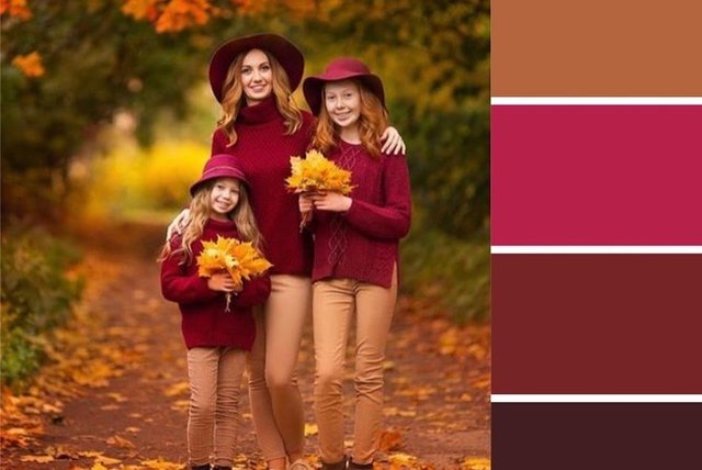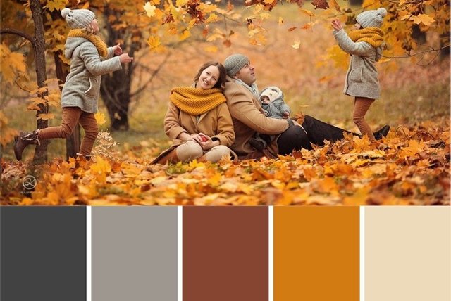 Важливо добре продумати ваш образ, щоб одяг пасував не лише вам й між собою, але й з природним тлом. Найкращі кольори для осінньої фотосесії: жовтий, гірчичний, помаранчевий, коричневий, червоний, бордовий, зелений, синій. Гама кольорів не має бути яскрава – надайте перевагу приглушеним кольорам.