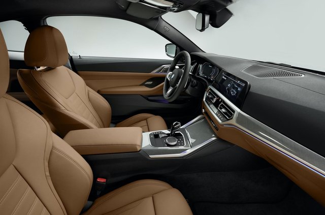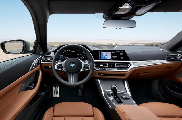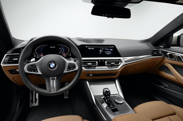 У салоні – по іншому оформлений блок управління трьохзонним клімат-контролем, специфічні для моделі крісла, фонове підсвічування на основі волоконної оптики, панорамний дах зі зсувною секцією, доступні за доплату віртуальна "приборка" з дисплеєм діагоналлю 12,3 дюйма і десятидюймовий екран медіасистеми з операційкою BMW OS 7.0. Для "четвірки" запропоновано кілька варіантів декоративних панелей, М-кермо зі шкіряною опліткою, а також спортивні сидіння з М-оббивкою.