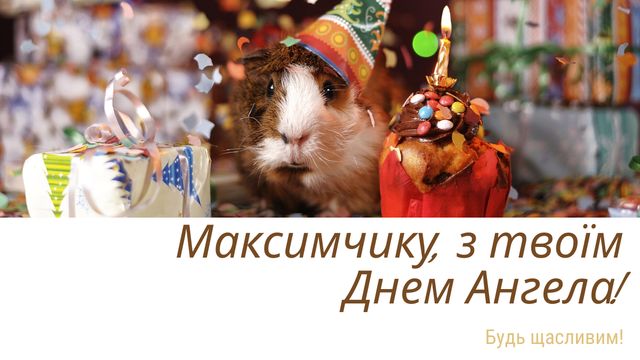 Максиме, вітаю тебе з твоїм Днем ангела! Хай не лише твій вірний охоронець тебе оберігає від незгод, а й доля не посилає перешкод. Хай все у тебе вдається без зайвих зусиль, хай оточують лише привітні люди, а мрії стають реальністю!
