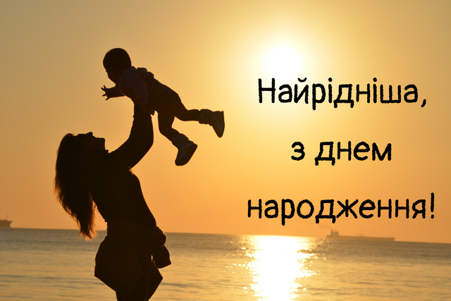 Мамо, нехай з роками меншає негараздів. Бажаю тобі тільки ясної погоди, хоча, не важливо, що там за вікном, нехай твій будинок буде наповнений любов'ю. Нехай близькі тебе зігрівають, а твоє серце наповнюється щастям. Достатку тобі! Нехай Господь наллє тобі повну чашу здоров'я. Будь ще сотню років молода. Люблю тебе! З днем народження, рідна!