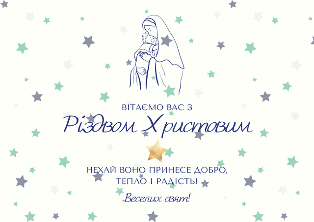Вітаємо з Різдвом Христовим! У це світле свято хочеться побажати миру і спокою в кожному домі, добра, взаєморозуміння, достатку, любові, щастя, душевної рівноваги, успіхів у всіх починаннях, більше радості, міцного здоров'я і всіх благ! Нехай виправдаються всі очікування і здійсняться найзаповітніші мрії!