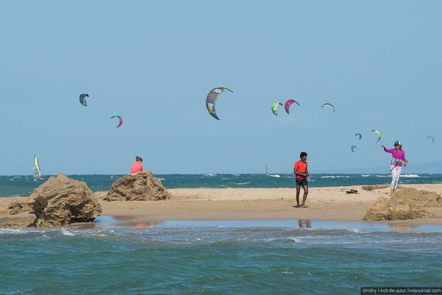 На щастя для цінителів ризикованих польотів над хвилями, свіжі морські вітри на острові не відрізняються імпульсивністю і більшу частину часу дмуть в потрібному для спортсменів напрямку. Ідеальний для кайтсерфінгу клімат приваблює в Домінікану як простих любителів, так і професійних спортсменів.