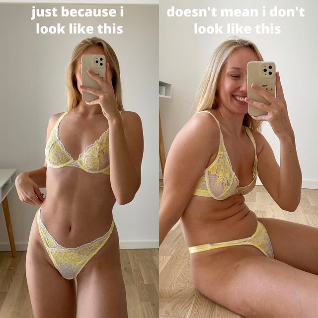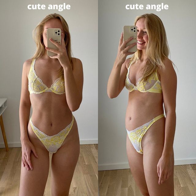 Блогерка зробила серію кадрів у спідньому, зроблених з різницею у кілька секунд. Спершу вона обрала найкращі пози та ракурси для світлин, а тоді просто розслабилась та зробила "зручні" фото.